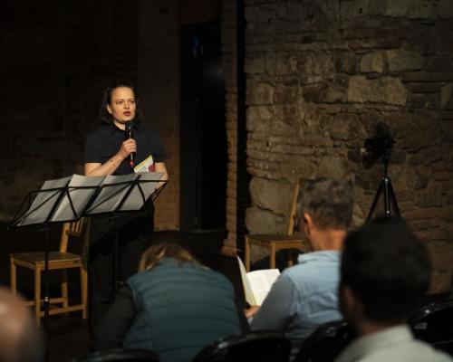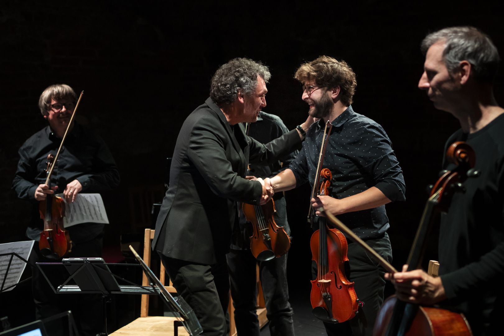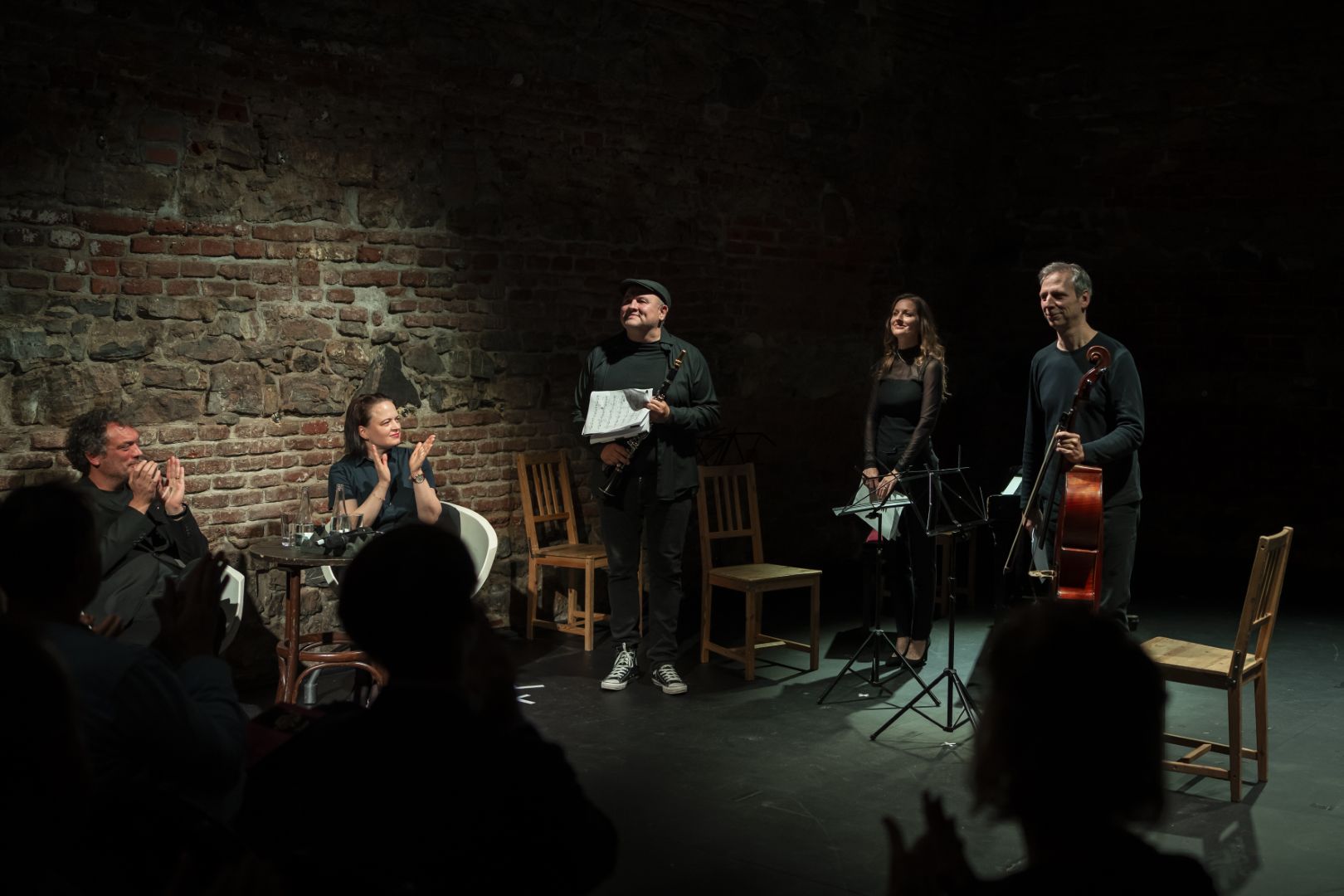 Rozhovor dramaturgyně Hany Dohnálkové s autorem nabídl vzácnou možnost nahlédnout do procesu jeho tvorby, která testuje interpreta i posluchače. A přesně to si diváci mohli na místě ověřit.