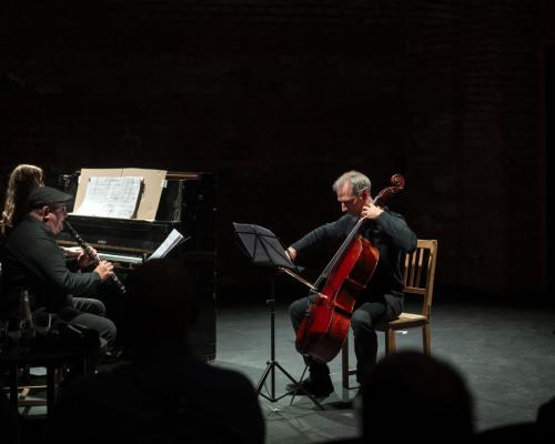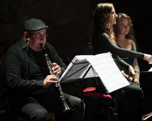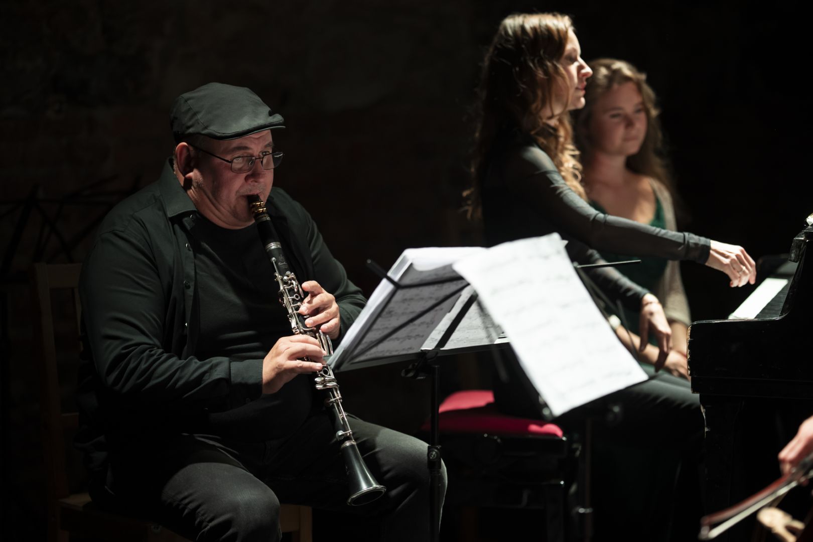 Na scéně se představili také Jindřich Pavliš (klarinet) a Eva Hutyrová (klavír), právě s Balázsem Adorjánem v intenzivním triu IOI.