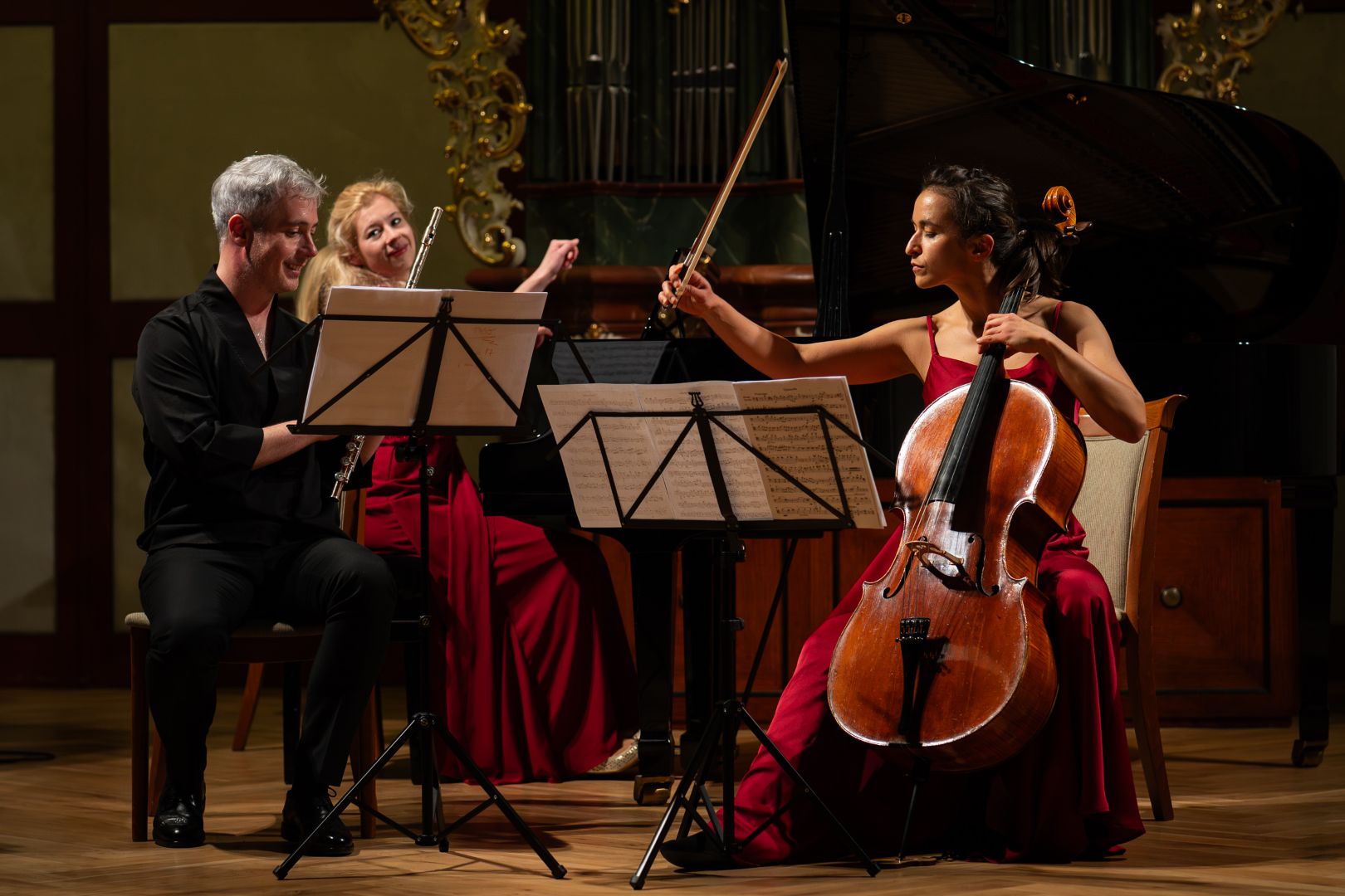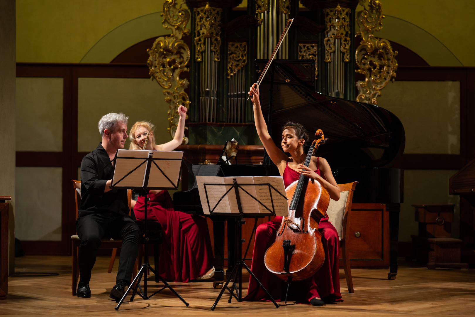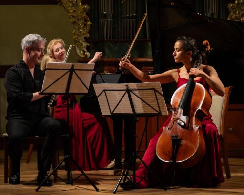 V podání flétnisty Oto Reipricha, violoncellistky Kristiny Vocetkové a klavíristky Johanny Hanikové zazněla vedle Tří romancí pro flétnu a klavír i tři Tria: Clary Schumann, Johanna Nepomuka Hummela a na závěr strhující jazzové trio Nikolaie Kapustina.