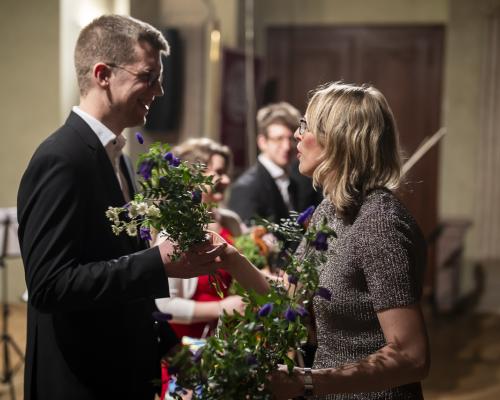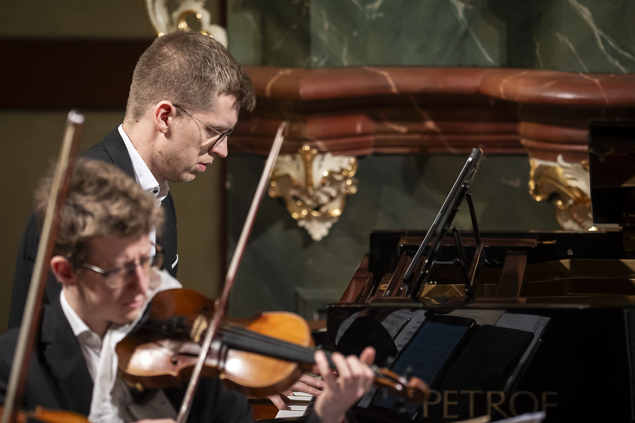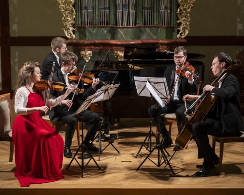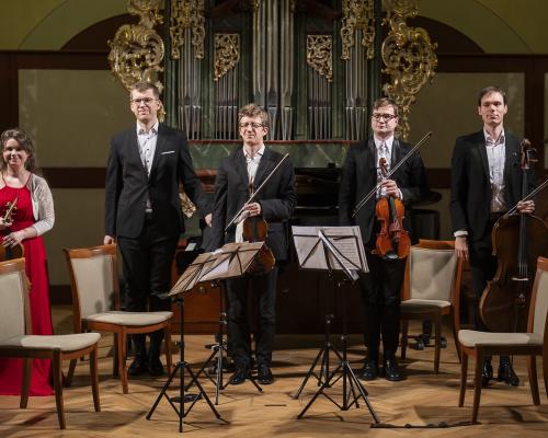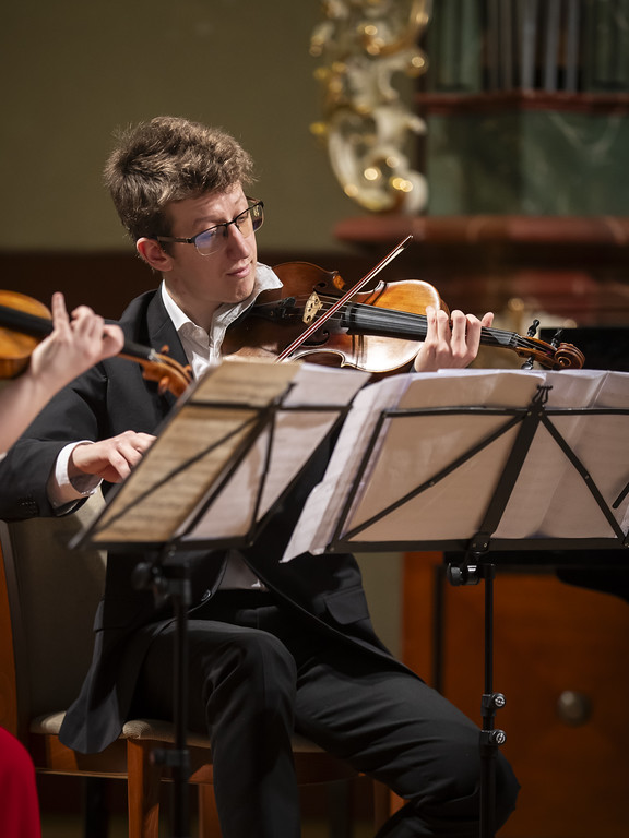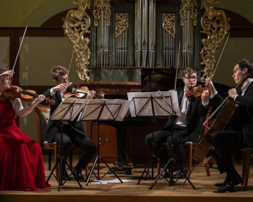 První polovina večera patřila Schumannově vroucnosti a drásavé intimitě Smyčcového kvartetu č. 1 Leoše Janáčka. Ve druhé části gradovala atmosféra díky našim vzácným hostům: violoncellista Juraj Škoda spolu s naší koncertní mistryní Pavlou Tesařovou brilantně přednesli Kodályho Duo op. 7 a závěr patřil strhujícímu Klavírnímu kvintetu g moll Dmitrije Šostakoviče za doprovodu klavíristy Marka Kozáka. Děkujeme Vám za úžasnou atmosféru a dlouhotrvající potlesk, který byl tou nejkrásnější odměnou pro všechny účinkující.