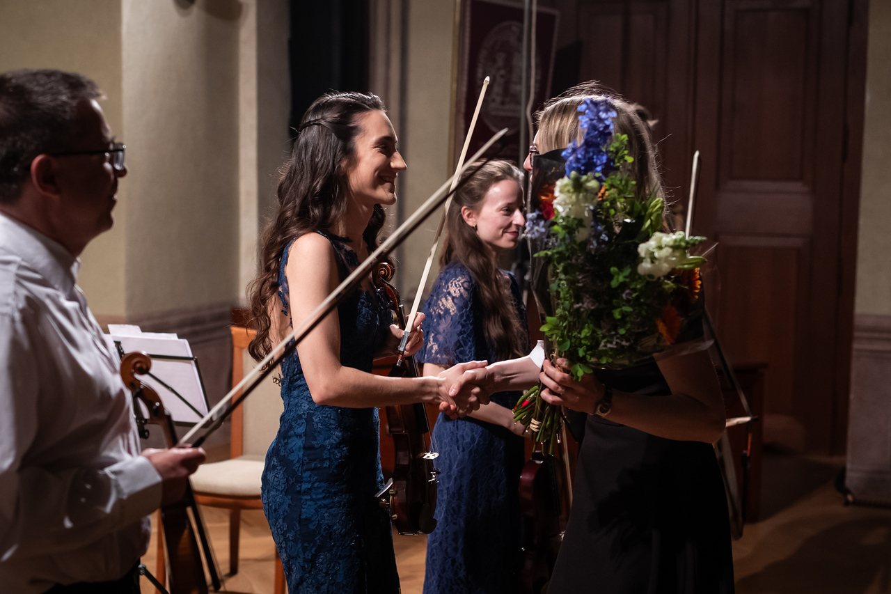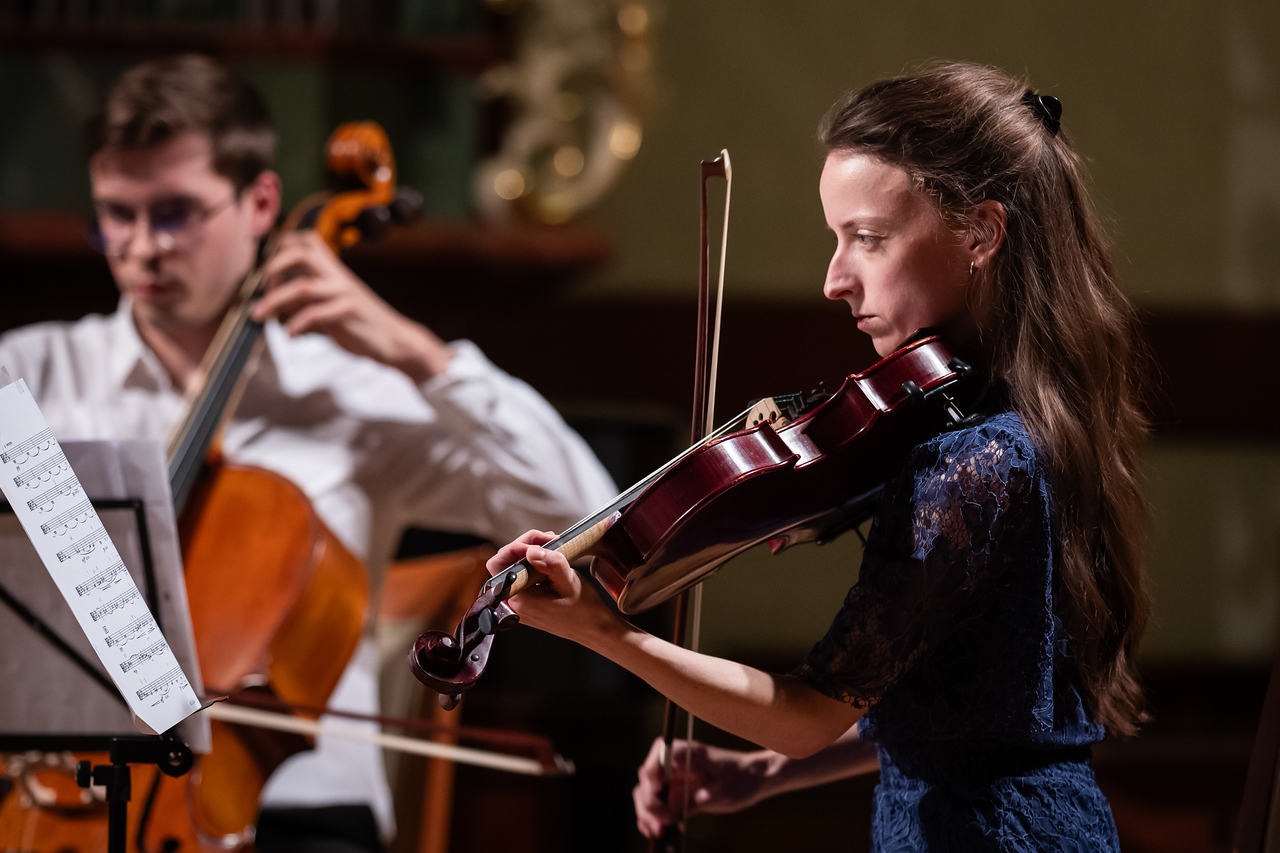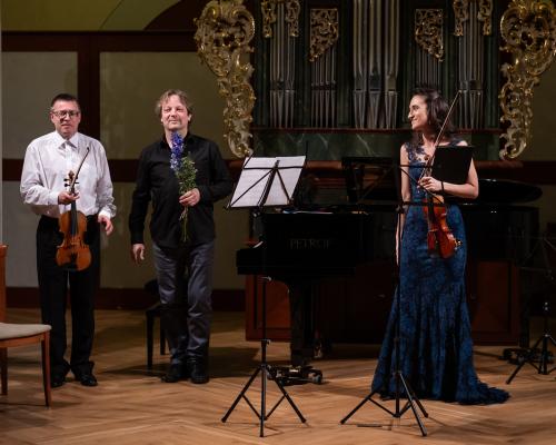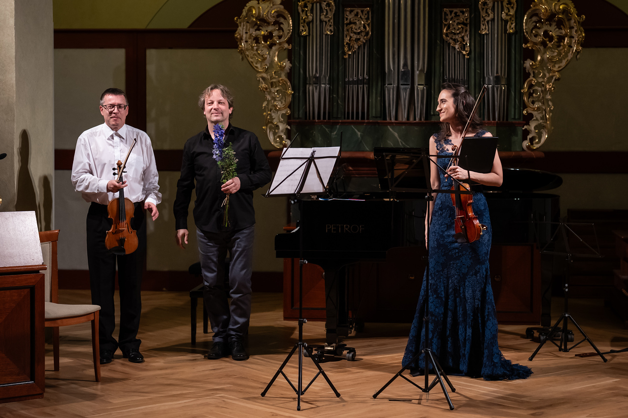 Výjimečný prostor však dostala také tvorba letošního jubilanta Dmitrije Šostakoviče. Po odlehčených 5 kusech pro dvoje housle a klavír sál doslova zatajil dech při závěrečném strhujícím Smyčcovém kvartetu č. 8 c moll. Toto hluboké dílo, které skladatel zamýšlel jako vlastní epitaf v období balancování na tenké hraně mezi životem a smrtí, zaznělo v mistrovském podání Miloslava Vrby, Kateřiny Krejčové, Karolíny Franclíkové, Andreje Lekeše a Martina Fily.