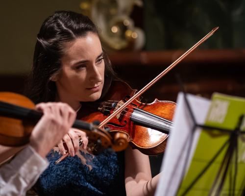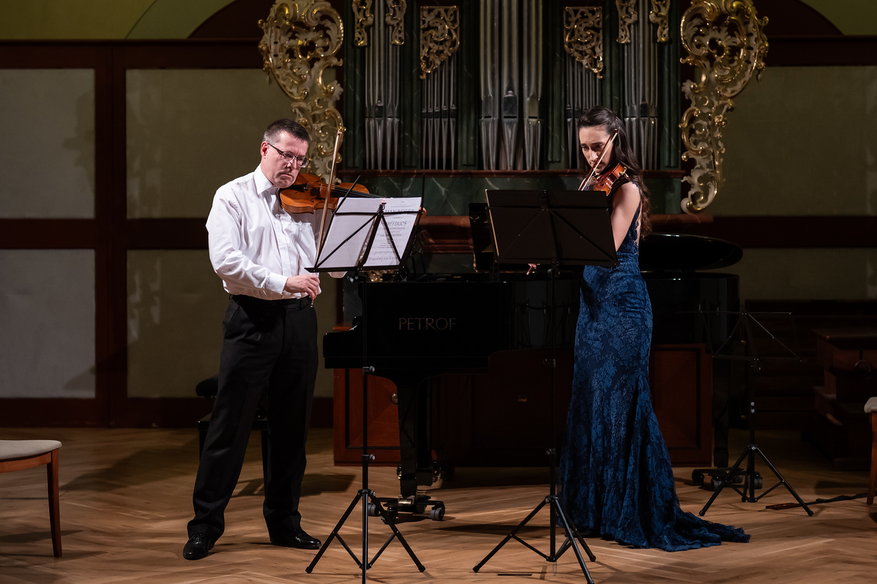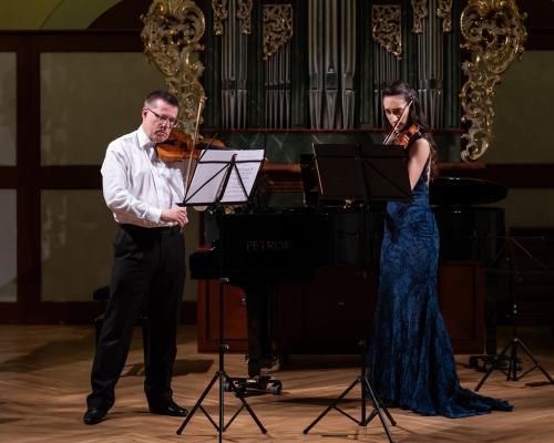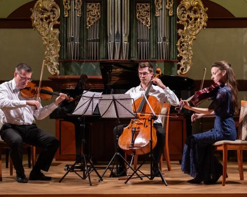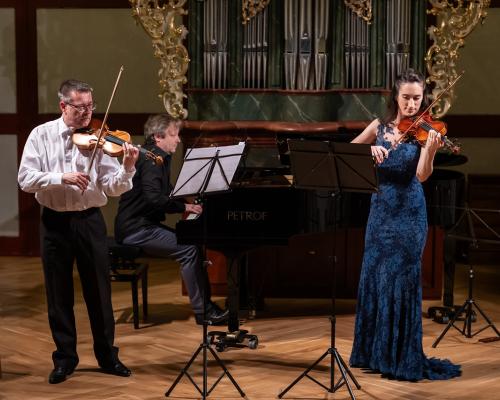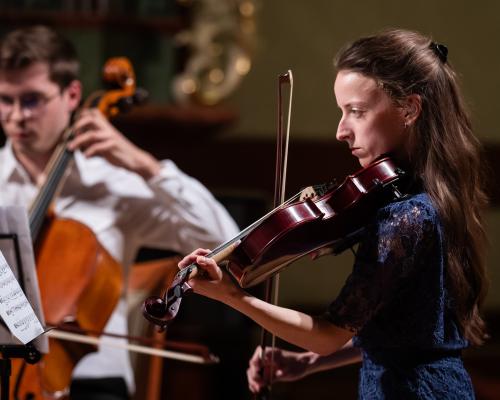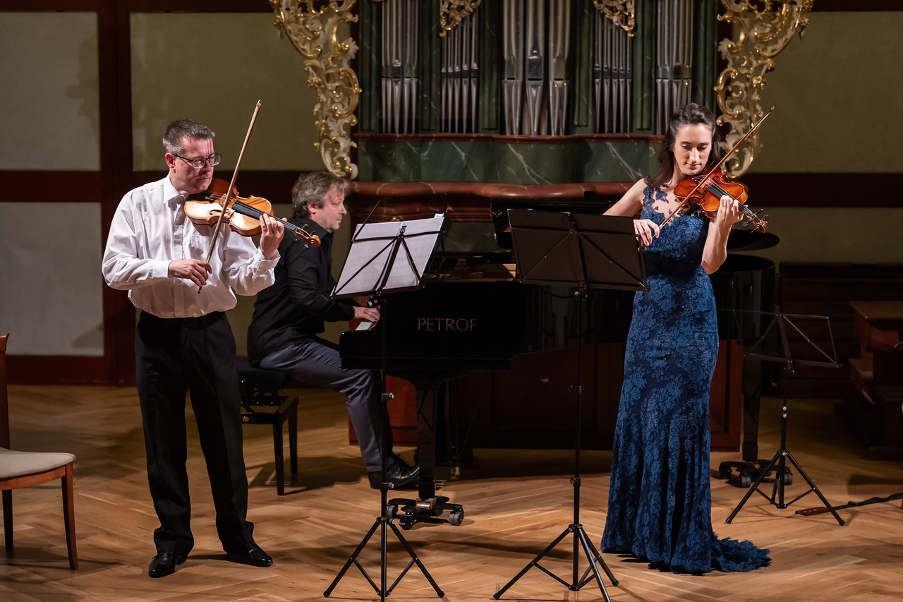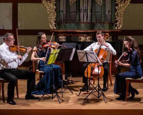 Výjimečný prostor však dostala také tvorba letošního jubilanta Dmitrije Šostakoviče. Po odlehčených 5 kusech pro dvoje housle a klavír sál doslova zatajil dech při závěrečném strhujícím Smyčcovém kvartetu č. 8 c moll. Toto hluboké dílo, které skladatel zamýšlel jako vlastní epitaf v období balancování na tenké hraně mezi životem a smrtí, zaznělo v mistrovském podání Miloslava Vrby, Kateřiny Krejčové, Karolíny Franclíkové, Andreje Lekeše a Martina Fily.